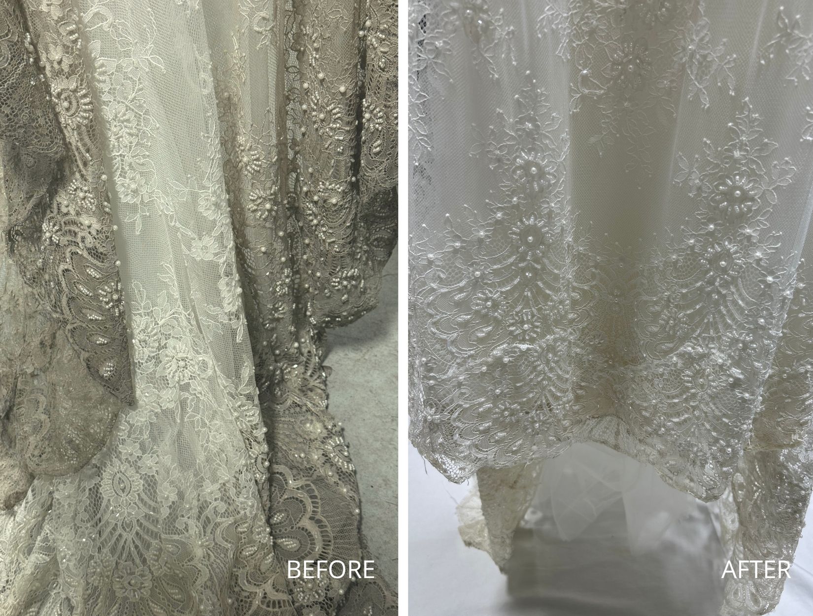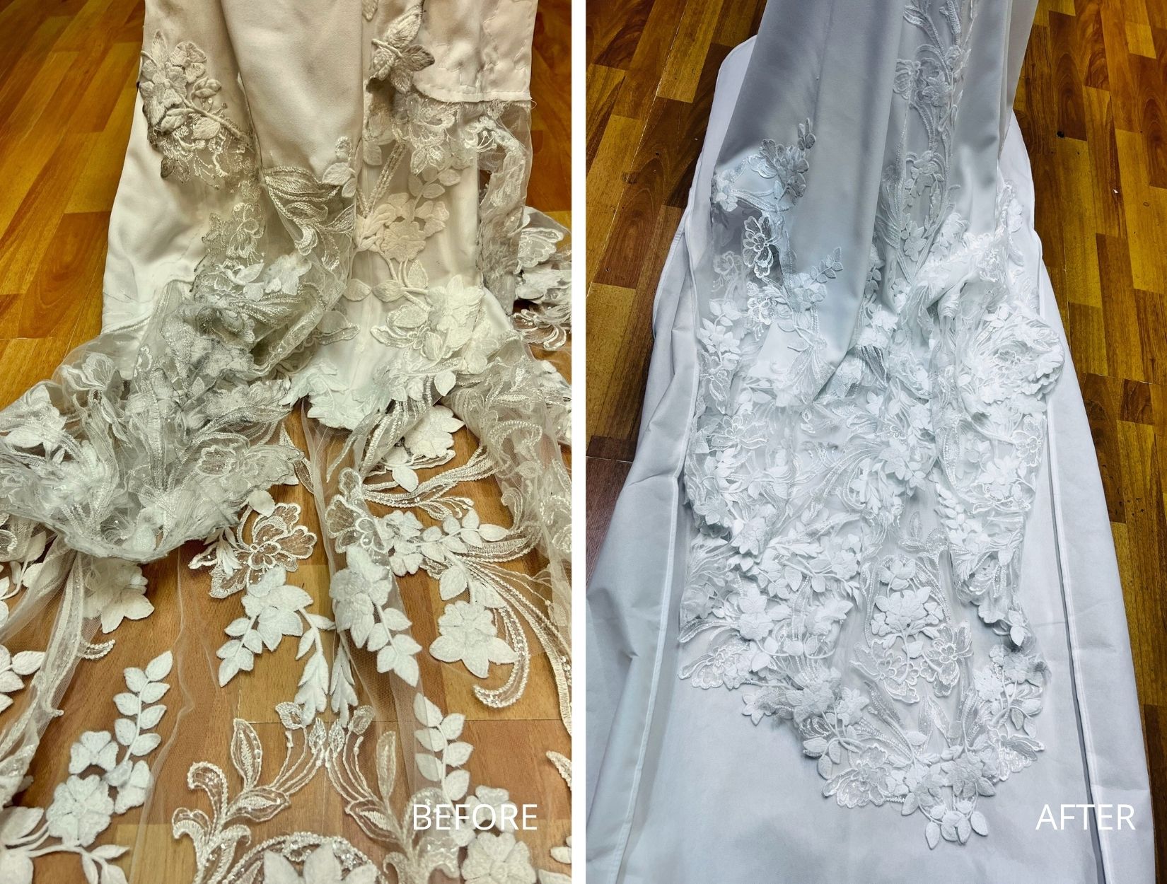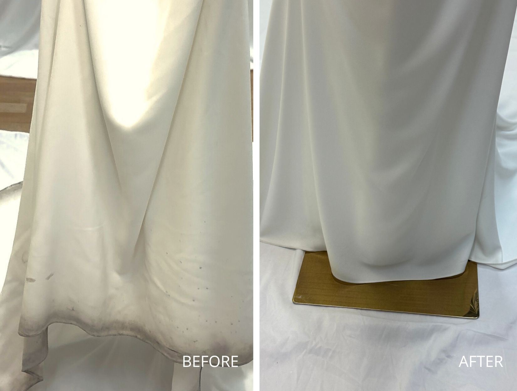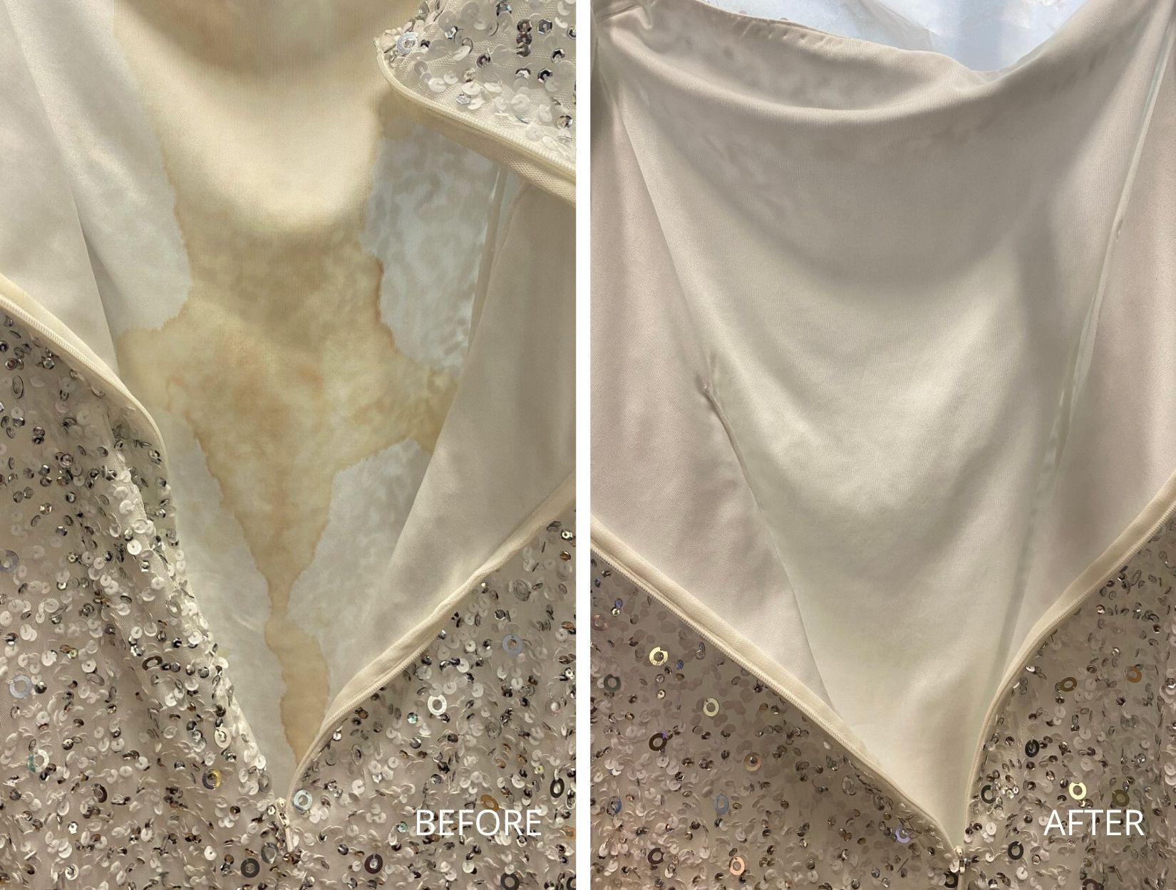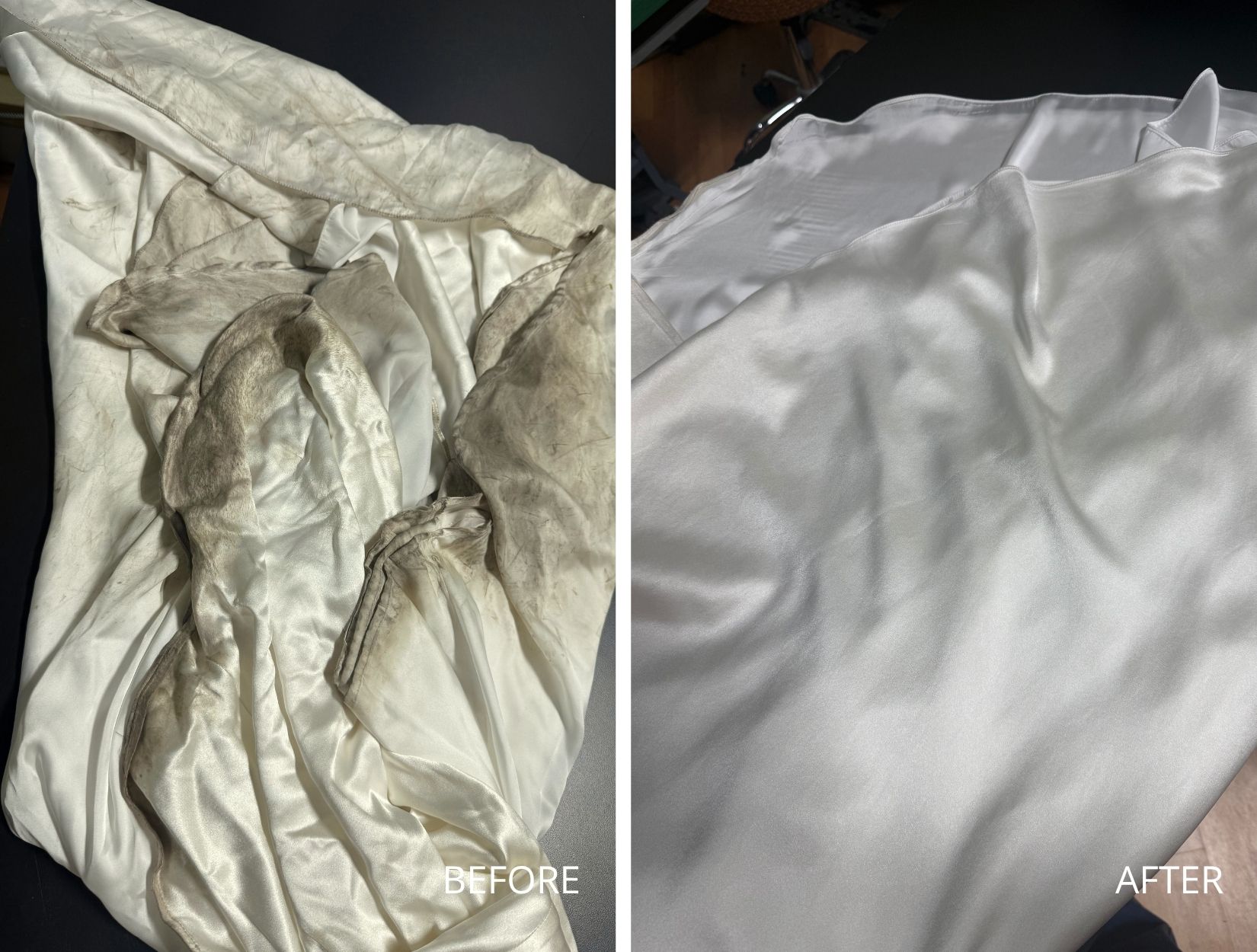 Our gentle, solvent-based cleaning treats each dress individually, lifting invisible stains and restoring brilliance, so your memories remain timeless.